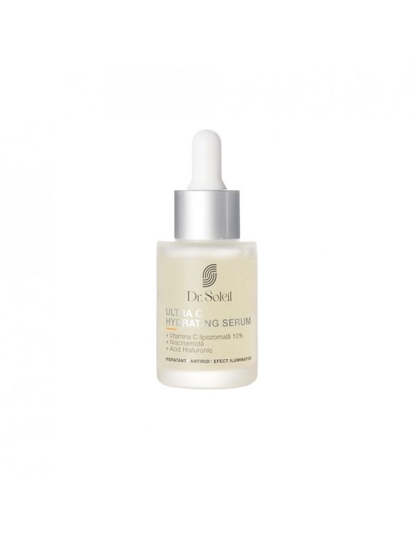Ultra C Hydrating Serum Dr. Soleil este un serum hidratant si revitalizant, formulat cu vitamina C lipozomala 10%, niacinamida si acid hialuronic. Sinergia acestor ingrediente active ofera hidratare intensa, protectie antioxidanta si sustine un ten luminos, uniform si ferm. Potrivit pentru toate tipurile de piele, inclusiv cea sensibila.