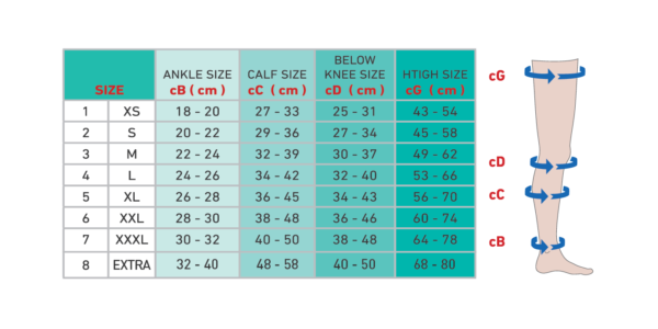 Compresia este graduala, mai ridicata la nivelul gleznei si scazand progresiv spre coapse, facilitand intoarcerea sangelui catre inima. Produsul poate contribui la prevenirea aparitiei ulcerelor varicoase si a trombozei venoase profunde, conform recomandarii medicale.