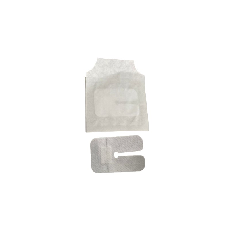 Aplicati plasturele pe pielea curata si uscata, asigurand pozitionarea corecta a decupajului in jurul branulei. Fixati usor, fara a exercita presiune excesiva.