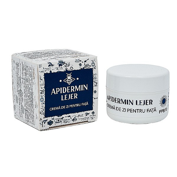 Apidermin Lejer de Zi este o crema hidratanta cu formula usoara, special conceputa pentru tenul normal sau mixt. Produsul reia principiile gamei clasice Apidermin, cu o traditie de peste 50 de ani, fiind imbogatit cu un complex hidratant si factor de protectie solara SPF 15.