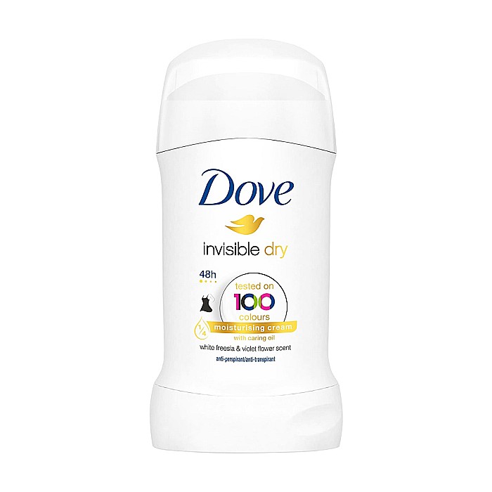 Deodorantul antitraspirant Dove Invisible Dry Stick cu Ulei Nutriente se ingrijeste de pielea de la subrat oferind protectie fara a lasa pete pe haine.