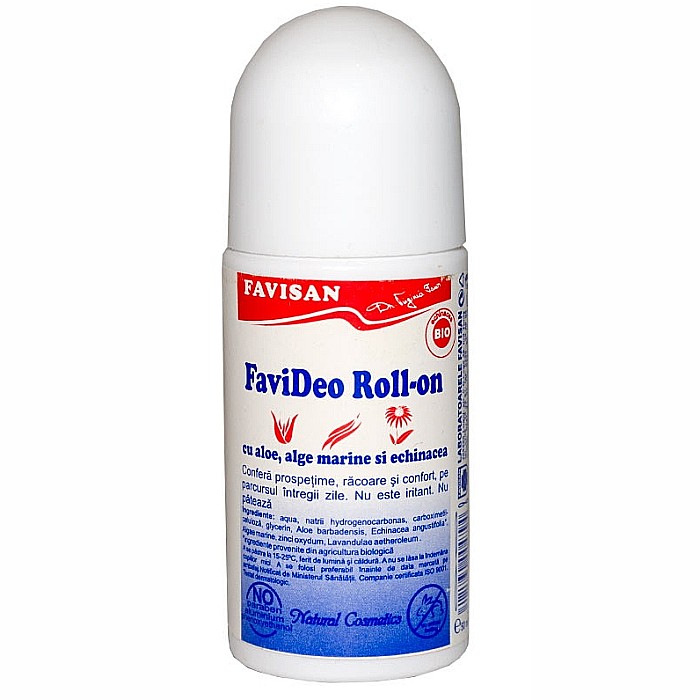 FaviDeo roll-on cu alge marine si echinacea 50 ml Favisan si are indicatii in: transpiratie excesiva (hiperhidroza) .