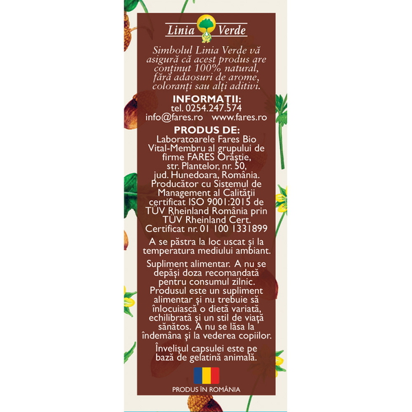 - Copii peste 12 ani si adulti: 1 capsula de 3 ori pe zi, inainte de masa. Pentru un efect mai puternic, 2 capsule de 3 ori pe zi.