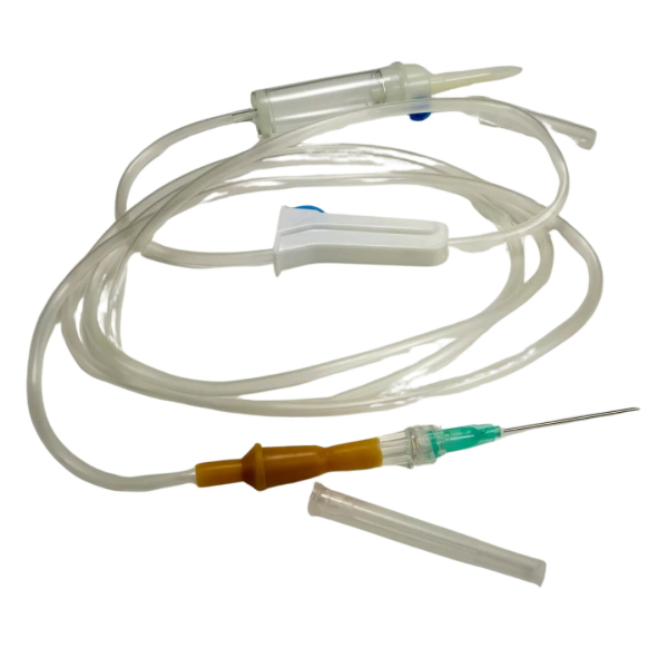 trusa perfuzie cu ac metalic, tub transparent 150 cm, sistem de reglare debit, ac hipodermic G21, sterilizata cu oxid de etilena (EO)