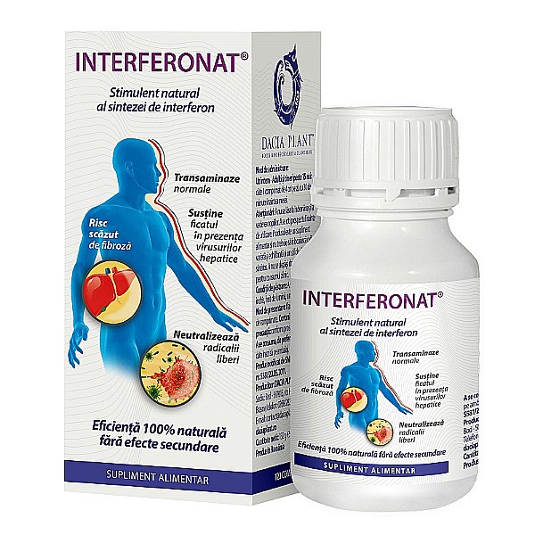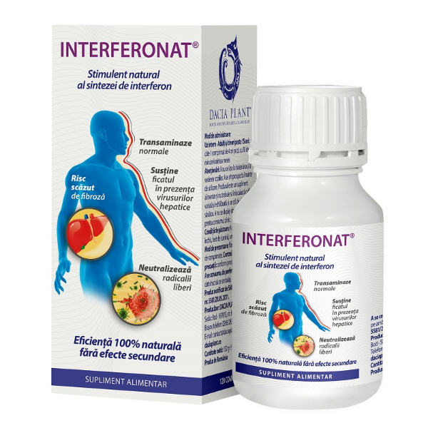 Interferonat este un supliment natural care contribuie la sustinerea sistemului imunitar prin stimularea secretiei de interferon si la regenerarea celulelor hepatice.