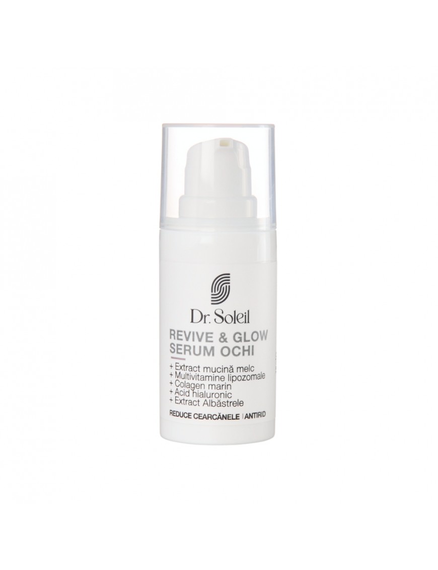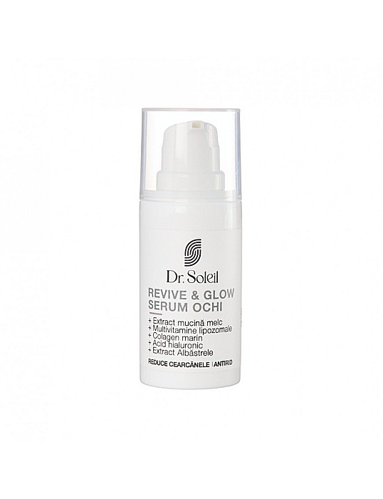 Crema Revive & Glow Dr. Soleil este o formula inovatoare imbogatita cu mucina de melc, acid hialuronic si colagen marin. Conceputa pentru a hidrata intens, a stimula regenerarea celulara si a reda fermitatea pielii, aceasta crema are textura lejera, se absoarbe rapid si ofera un finisaj mat, fiind ideala si ca baza pentru machiaj. Produs testat dermatologic, fara parabeni si coloranti, prietenos cu animalele, creat si fabricat in Romania.