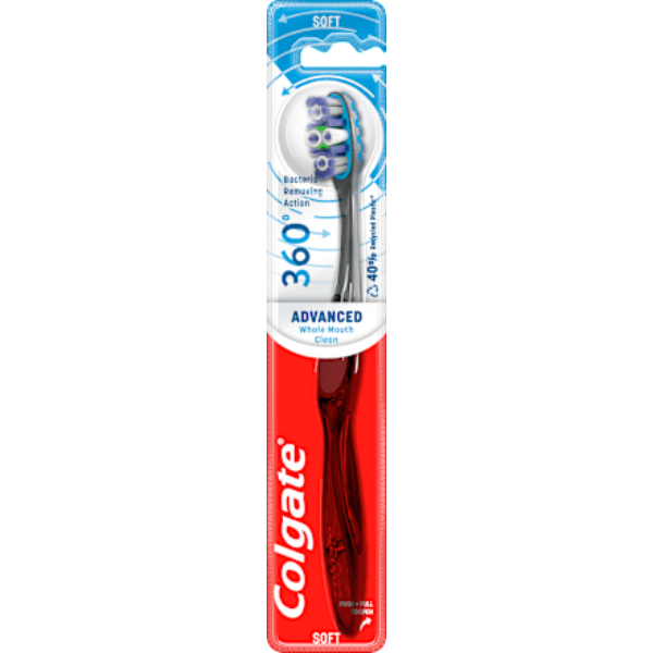 Colgate 360 Advanced Soft este o periuta de dinti cu cap activ 360° si peri cu inaltimi variabile, destinata ingrijirii orale zilnice. Aceasta este recomandata persoanelor care doresc o igiena orala completa, incluzand nu doar dinti, ci si limba si obrajii.