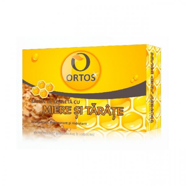 Sapun cu miere si tarate - 100g - revitalizant, regenerant si hidratantIndicatii: Recomandat pentru ten gras, incarcat.Actiune: Este un sapun ideal pentru exfolierea pielii si eliminarea punctelor negre. Taratele de grau combinate cu mierea actioneaza rapid asupra tenului gras si incarcat. Avand o importanta deosebita pentru ingrijirea frumusetii, mierea regenereaza pielea, o hidrateaza, dandu-i o elasticitate potrivita, o improspateaza si o intinereste. Datorita efectelor sale antibacteriene este un excelent remediu impotriva cosurilor si zgarieturilor.Aplicare: Se recomanda spalarea pielii cu apa calda si sapun, se maseaza usor si se lasa 1 minut ca spuma sa actioneze asupra acesteia.Se clateste iar apoi se usuca tamponand usor. Se aplica de cate ori este nevoie.Ingrediente: Ulei de palmier, glicerina, parfum, miere, tarate.Prezentare: 100g