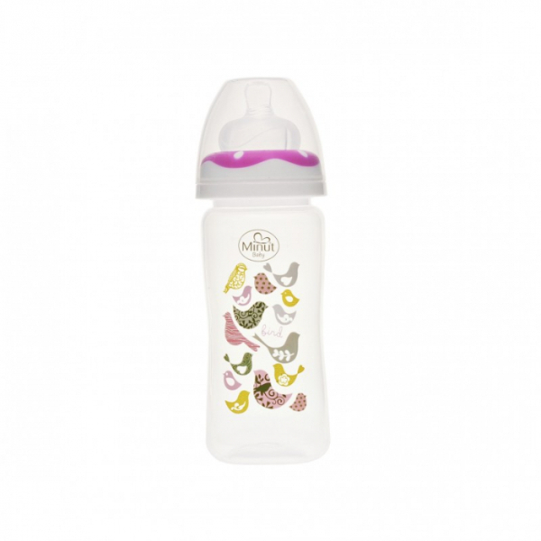Biberon Gat Larg 270 ml cu Tetina Silicon 3+ Minut Baby
