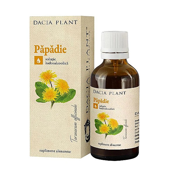Tinctura de papadie este o solutie hidroalcoolica obtinuta din partile aeriene ale plantei Taraxacum officinale, cu efecte benefice asupra sistemului hepato-biliar si digestiv. Extractul este usor asimilabil, avand o concentratie ridicata prin metoda speciala de extractie utilizata de Dacia Plant.