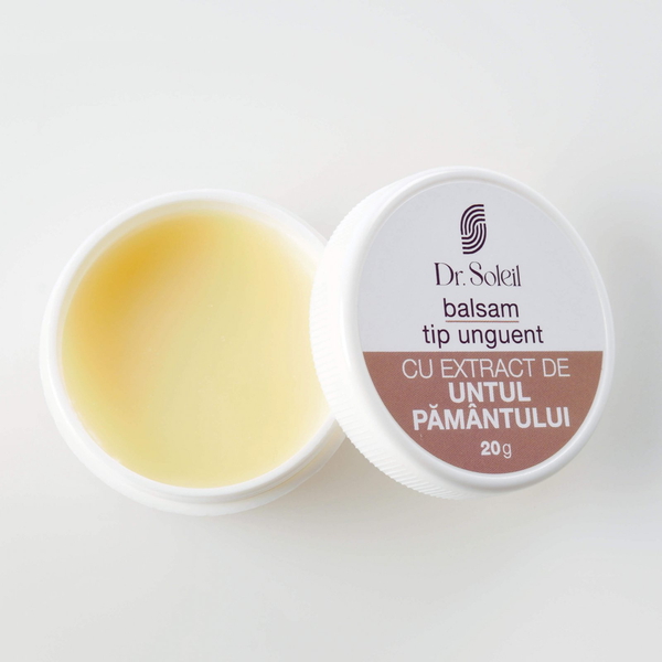 Revigoreaza-ti corpul cu balsamul tip unguent Dr. Soleil pe baza de Untul Pamantului. Perfect pentru disconfort muscular si articular. Formule traditionale 20g si 40g.